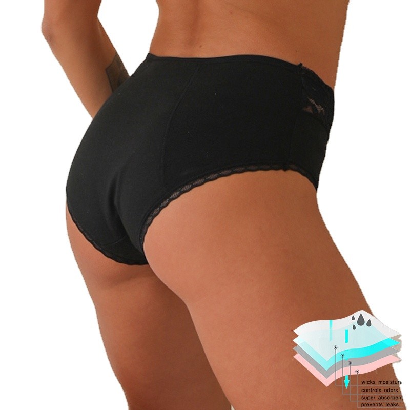 موردي الملابس الداخلية النسائية مانعة للتسرب من القطن العضوي فترة زهرة الدانتيل الملابس الداخلية الحيض