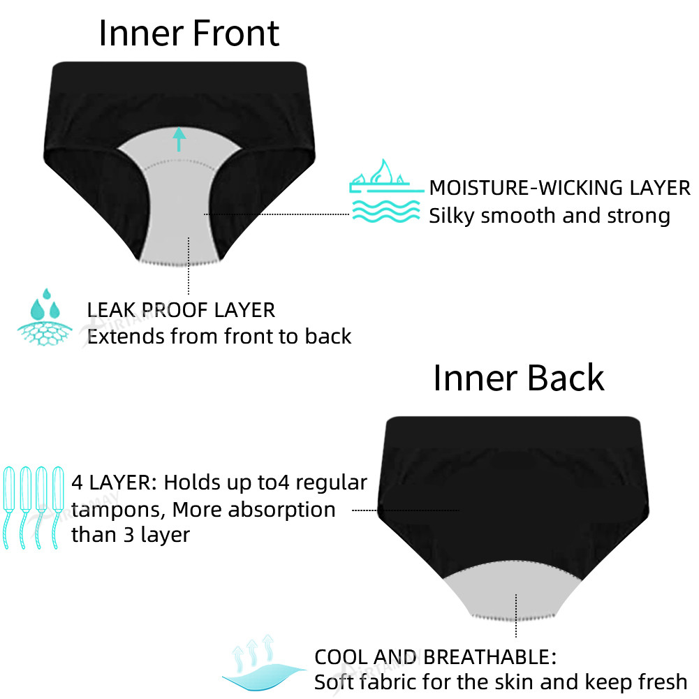 صديقة للبيئة الخيزران الألياف 4 طبقة فترة ملخصات سراويل داخلية مانعة للتسرب ماصة